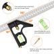 أدوات نجارة مربعة من الفولاذ المقاوم للصدأ مقاس 12 بوصة/300 مم، مسطرة 45/90 درجة مع مستوى الروح.