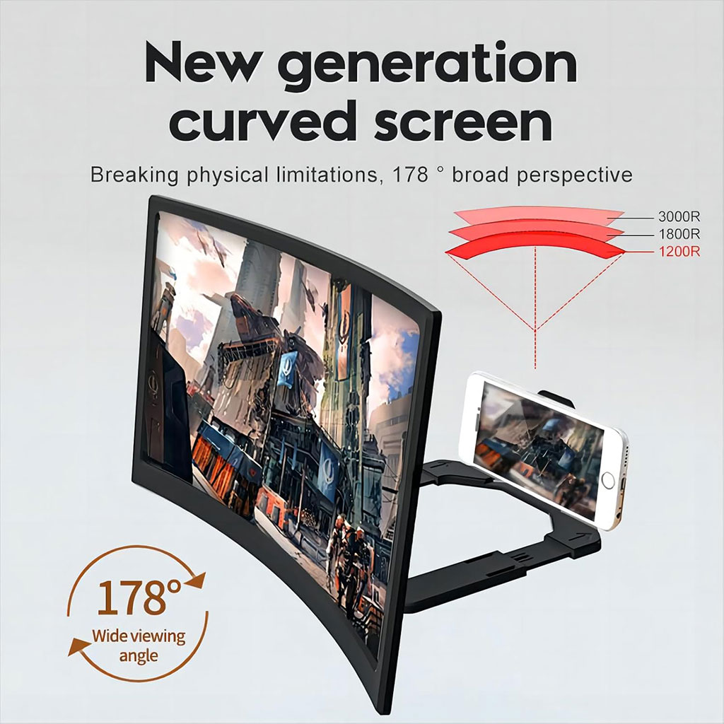 مكبر شاشة عملي للهواتف بتقنية HD مزود بحامل مدمج لعرض مريح وواضح.
