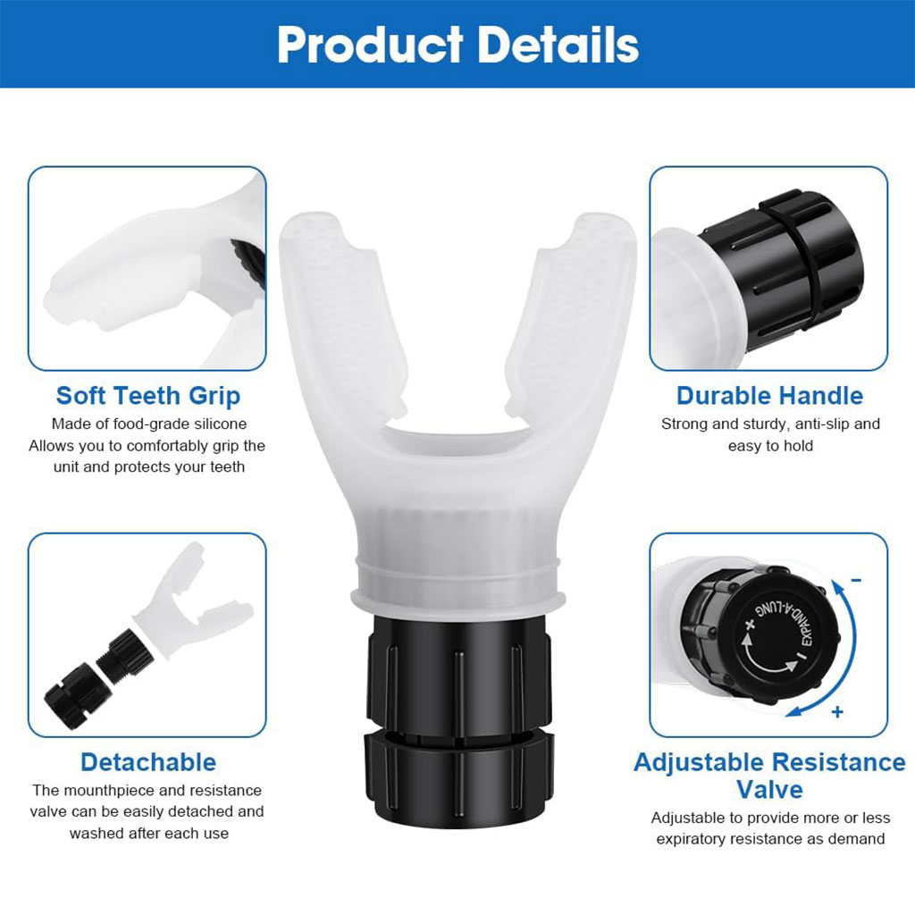 👌 ساهل الاستعمال والتنظيف: غير تنفّس ببطء من فمك، خليه شوية، وبعدها خرج النفس ببطء حتى تكمل. جهاز سهل يتفك ويتغسل.