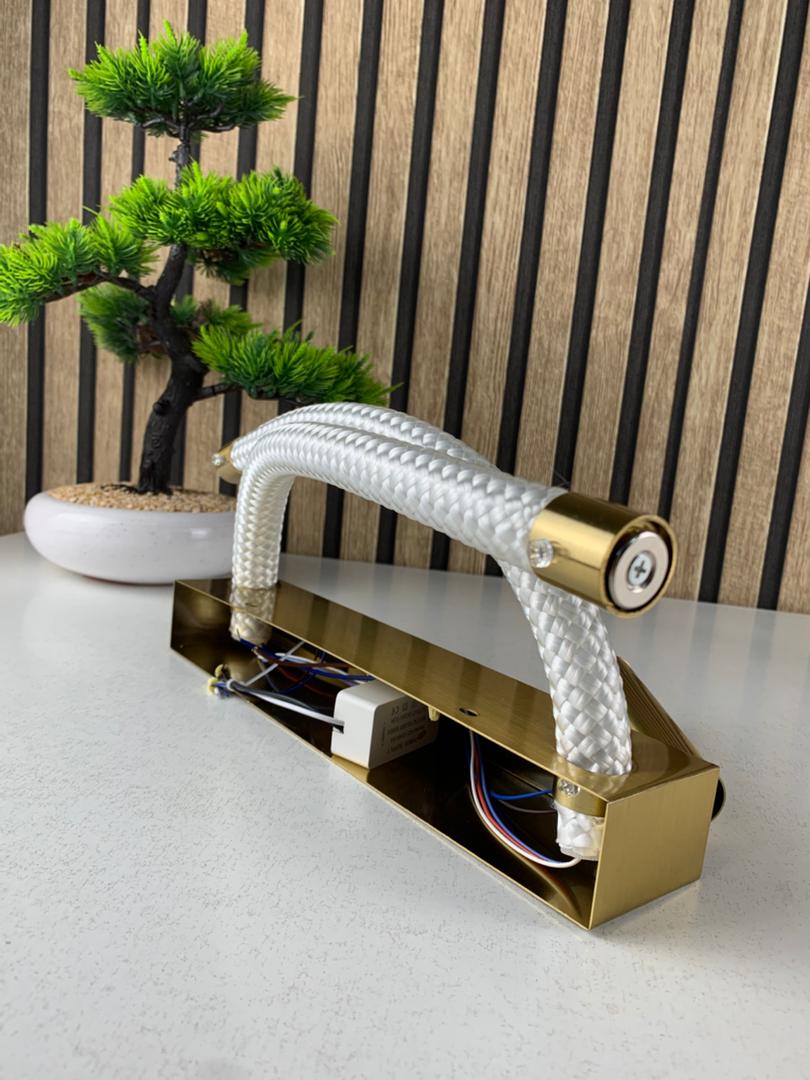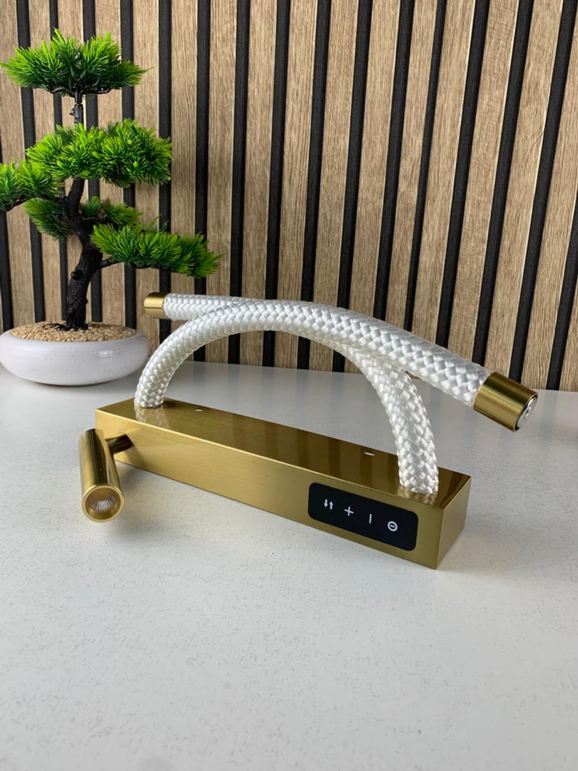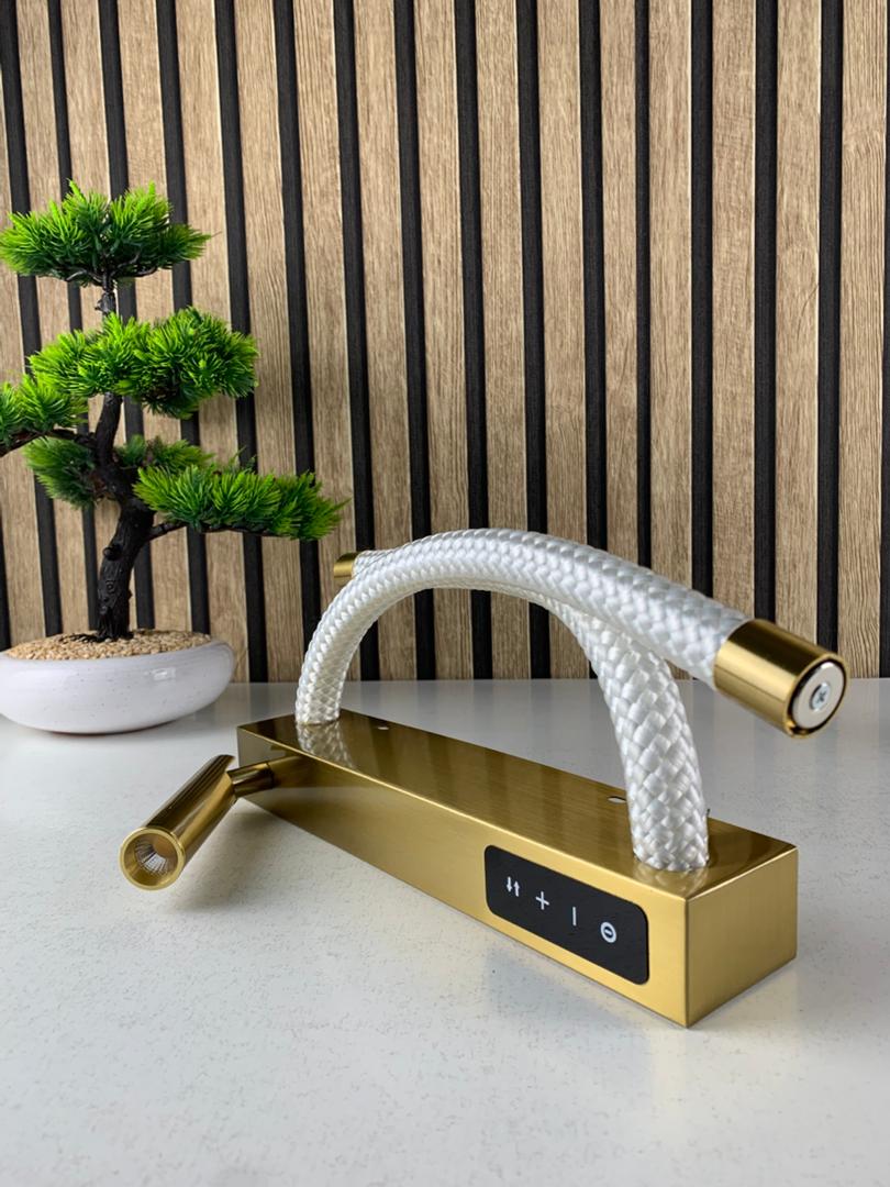 📝 الوصف :تتميز هذه الأبليك بهيكل معدني راقٍ بلمسة ذهبية، مع أنبوبين ضوئيين مضفرين يقدّمان إضاءة ناعمة ومتجانسة.