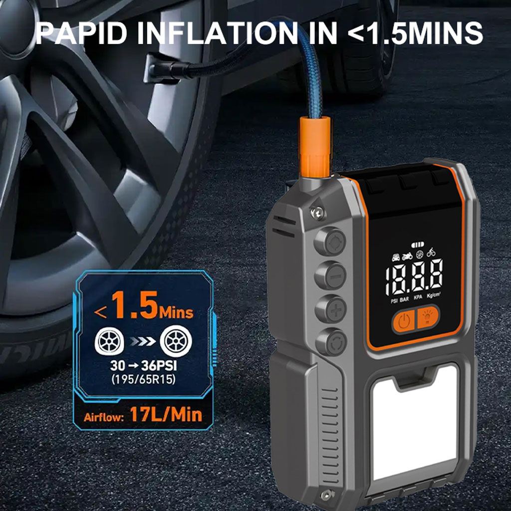 جهاز تشغيل بطارية السيارة مع منفاخ وإضاءة LED – أداة طوارئ 4 في 1 متعددة الاستخدام