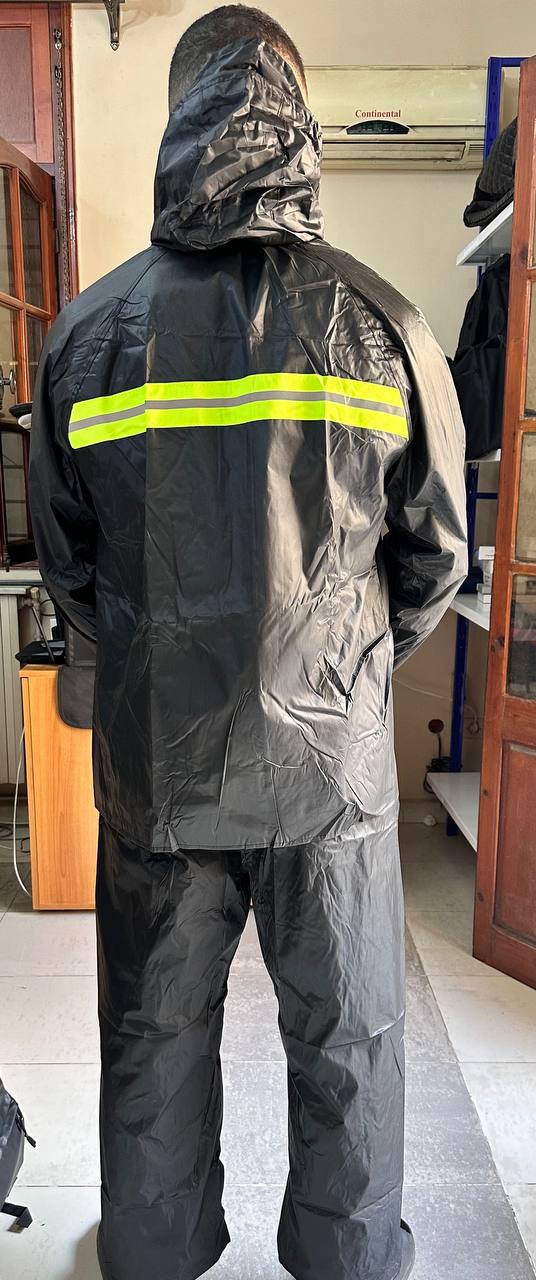 تمتّع بحماية كاملة من المطر بفضل البدلة الواقية المصنوعة من PVC عالي الجودة، المصممة لتمنحك الراحة والمرونة في جميع تحركاتك.