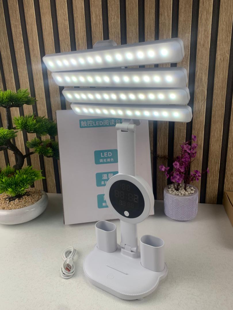 أضف لمسة من الحداثة والأناقة إلى مكتبك مع مصباح المكتب الذكي LED المزود بإضاءة محيطة ناعمة وشاشة رقمية مدمجة. مثالي للطلاب، المهنيين أو عشاق القراءة الذين يبحثون عن إضاءة مريحة وعملية في نفس الوقت.