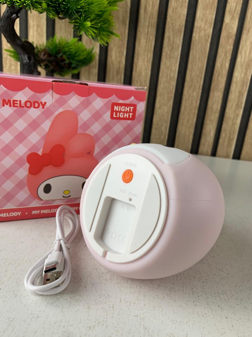 مصباح نوم لطيف على شكل شخصية My Melody بتصميم كاوائي جذاب يبعث الراحة والطمأنينة. مزود بضوء LED دافئ يمنح أجواء هادئة ومناسبة لنوم عميق و آمن للأطفال.