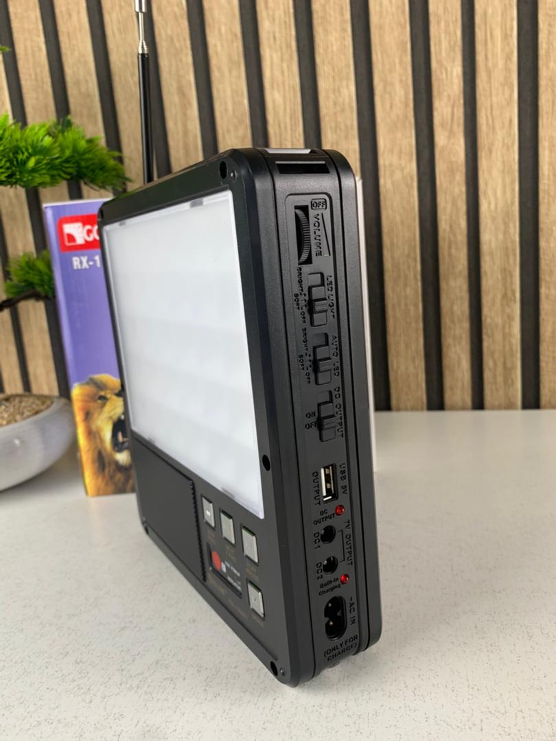 لمبة RX-1066BT تجمعلك الإنارة، الشحن، الموسيقى، والراديو في جهاز واحد صغير، عملي، وسهل الاستعمال. مثالية للدار، الفيرما، المخزن، الرحلات، وحتى للطوارئ.
