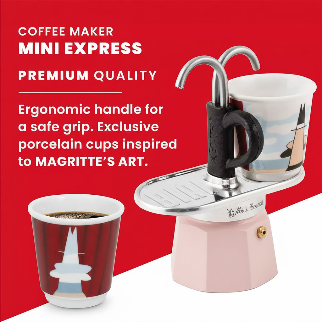 اجعل لحظة القهوة اليومية أكثر تميزًا مع هذه الكافيتير الإيطالية المصمّمة لتحضير فنجانين من الإسبريسو في نفس الوقت، وبلمسة فنية ساحرة مستوحاة من عالم الرسّام الشهير ماغريت.