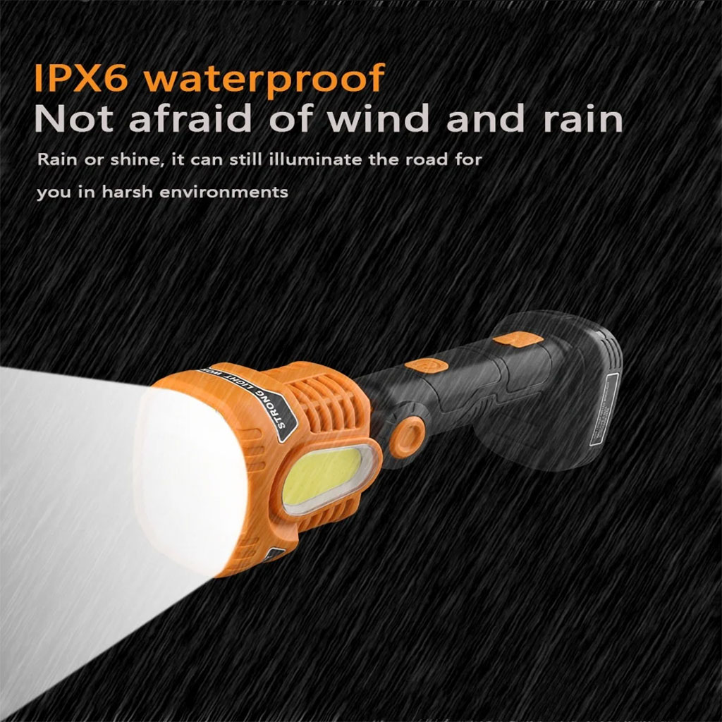 مصباح يدوي LED مفصلي وقابل للشحن عبر USB، خيار مثالي للِّي يحبّو الوظائف المتعددة والإنارة الدقيقة. التصميم الواجهـي يسمح بتوجيه الضوء مباشرة قدّامك، مناسب للتخييم، الترميمات في الدار، الطوارئ، أو العمل في الليل.