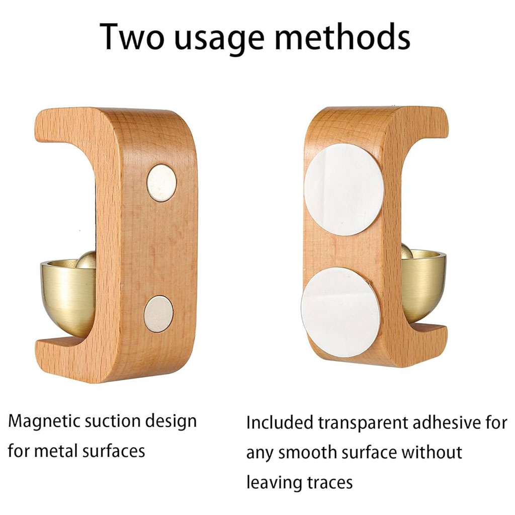 سهل التركيب: ثبّت جرس الباب الخشبي هذا أينما تشاء. بفضل مغناطيسه المدمج وشريط لاصق مزدوج الجوانب، يُمكن تثبيته على الحديد، وأبواب الثلاجات، وغيرها من الأسطح المغناطيسية. استمتع بتركيب سهل وسريع دون الحاجة إلى أسلاك أو حفر.