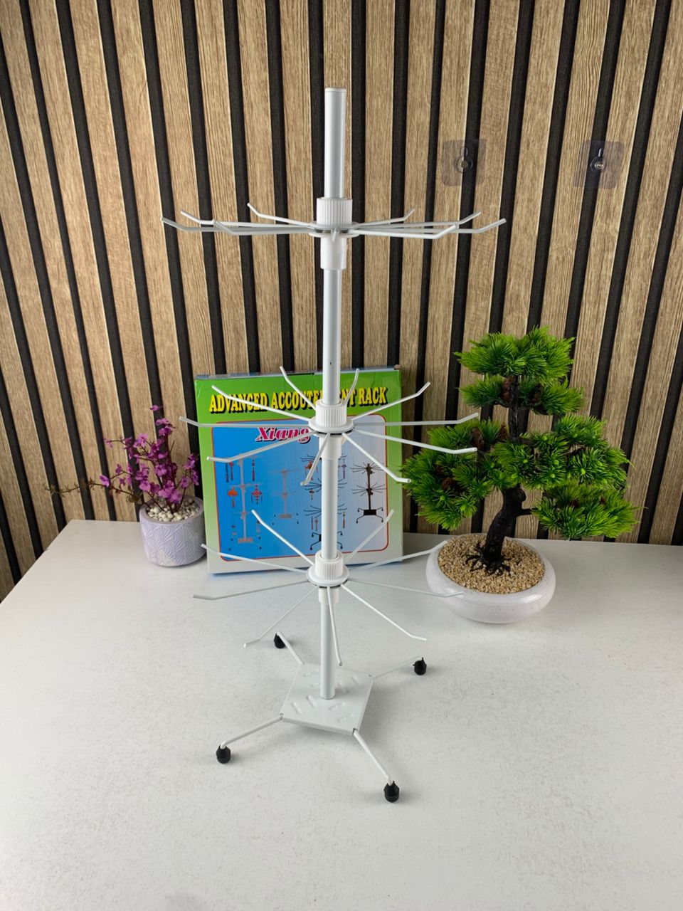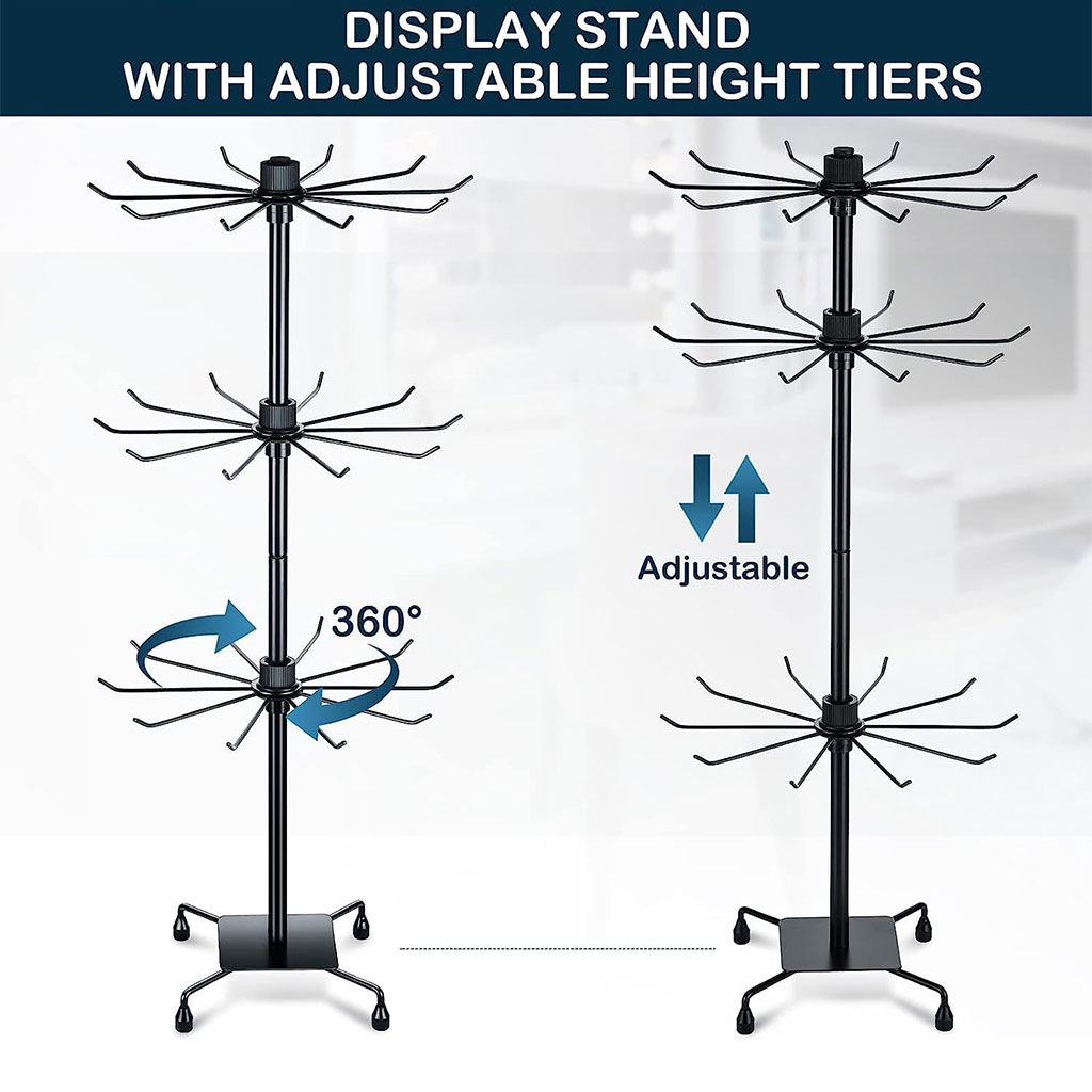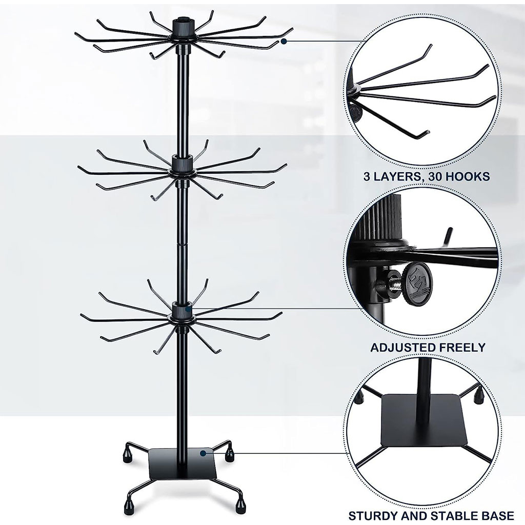 حامل مجوهرات بثلاث طبقات مزوّد بـ 10 خطافات دوّارة بزاوية كاملة 360 درجة، مثالي لتعليق الأقراط، الأساور، القلائد وغيرها.