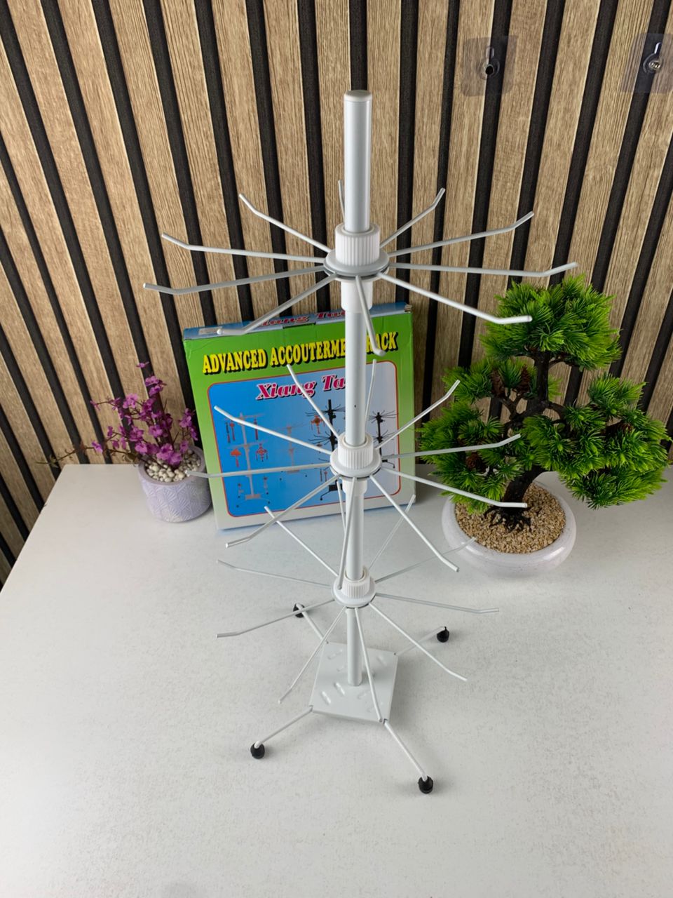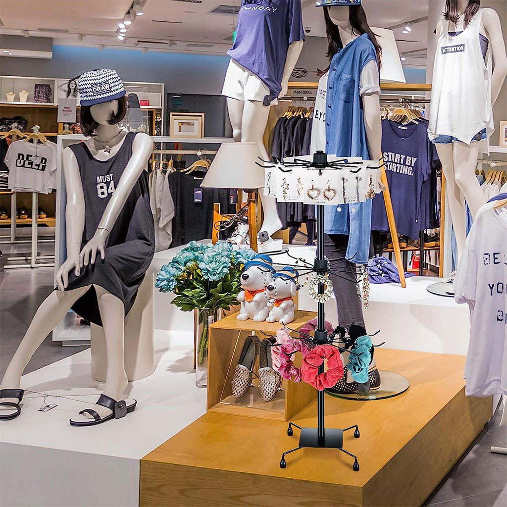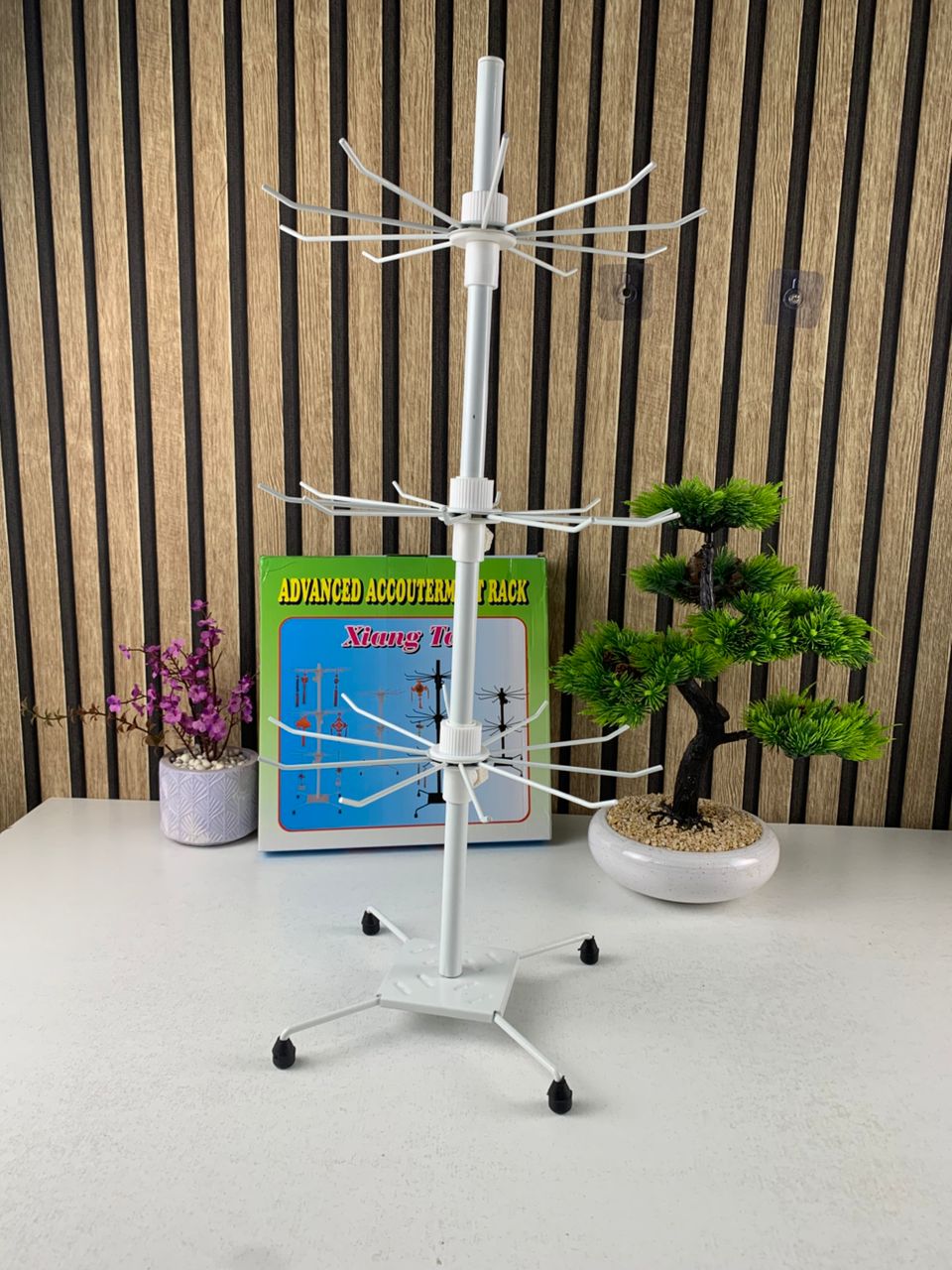 حامل مجوهرات بثلاث طبقات مزوّد بـ 10 خطافات دوّارة بزاوية كاملة 360 درجة، مثالي لتعليق الأقراط، الأساور، القلائد وغيرها.