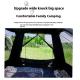 La tente et l’auvent peuvent être combinés par fermeture éclair ou utilisés séparément.La porte de la tente peut être soutenue par des poteaux pour servir de porche, offrant ainsi de l’ombre supplémentaire.Conception entièrement étanche à la pluie, protège efficacement l’intérieur de la tente contre l’intrusion d’eau de pluie les jours de pluie.Deux portes et deux fenêtres, ventilation tridimensionnelle. Moustiquaire sur les quatre côtés, anti-moustiques.La combinaison du tissu 210T Ox et du revêtement à technologie occultante complète offre des effets exceptionnels de protection solaire et d’isolation thermique.