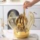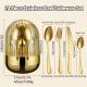 Design Élégant et Luxueux – تصميم أنيق وفاخر : Cet ensemble de couverts dorés ajoute une touche de sophistication à votre table, idéal pour les mariages, hôtels ou dîners spéciaux.Acier Inoxydable de Haute Qualité – فولاذ مقاوم للصدأ عالي الجودة : Fabriqué en acier inoxydable durable, chaque pièce est résistante à la corrosion et conçue pour une utilisation à long terme.Service pour 6 Personnes – خدمة لـ 6 أشخاص : L'ensemble comprend 24 pièces : 6 couteaux, 6 fourchettes, 6 cuillères à soupe et 6 cuillères à café, parfait pour les repas en famille ou entre amis.Facile à Entretenir – سهل الصيانة : Les couverts sont faciles à nettoyer et passent au lave-vaisselle, simplifiant ainsi leur entretien quotidien.