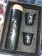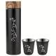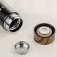 ترمس معزول من الفولاذ المقاوم للصدأ مع غطاء خشبي منقوش و2 كوب